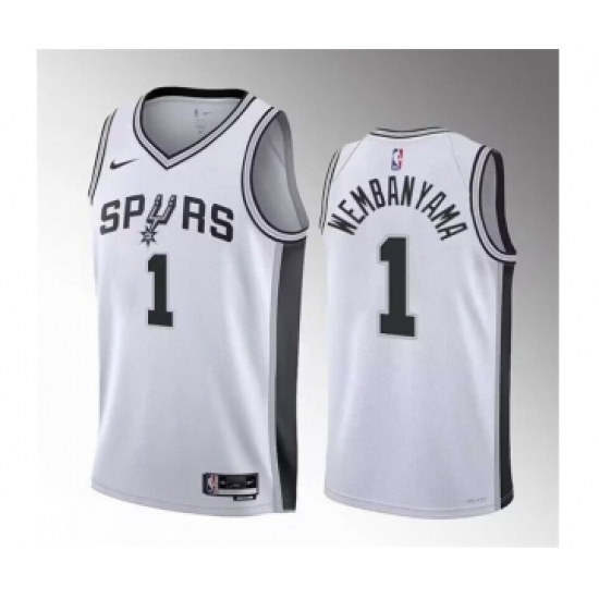 >Men's San Antonio Spurs #1 Victor Wembanyama White 2022-23 Association Edition Stitched Basketball Jerseys