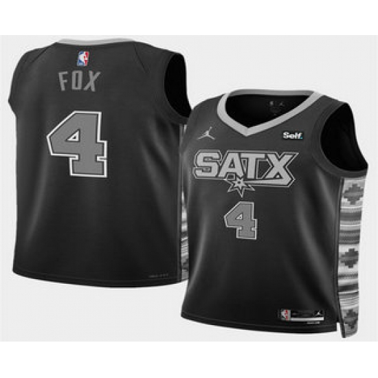 Men's San Antonio Spurs #4 DeAaron Fox Black 2025 Statement Edition Stitched Jersey