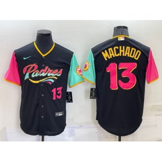 >Men's San Diego Padres #13 Manny Machado Black Number 2022 City Connect Cool Base Stitched Jersey