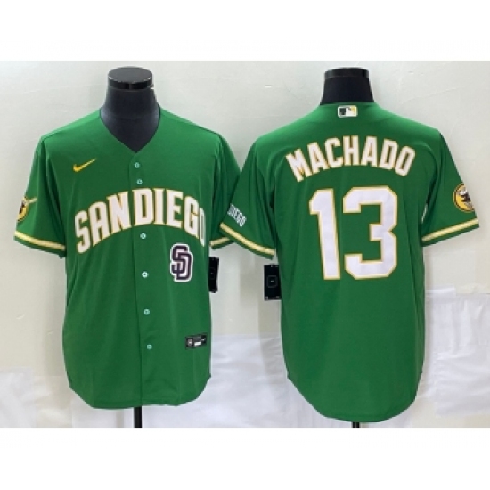Men's San Diego Padres #13 Manny Machado Green Cool Base Stitched Baseball Jersey 1