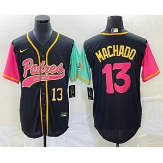 >Men's San Diego Padres #13 Manny Machado Number Black NEW 2023 City Connect Cool Base Stitched Jersey