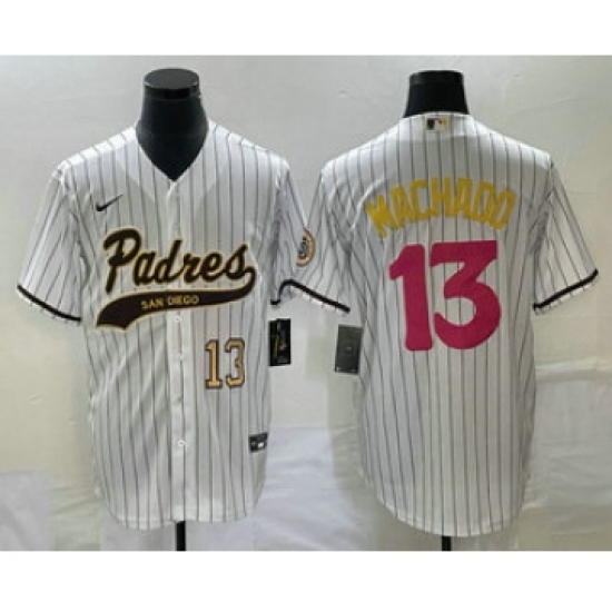 Men's San Diego Padres #13 Manny Machado White Pinstripe 2023 City Connect Cool Base Stitched Jersey 1