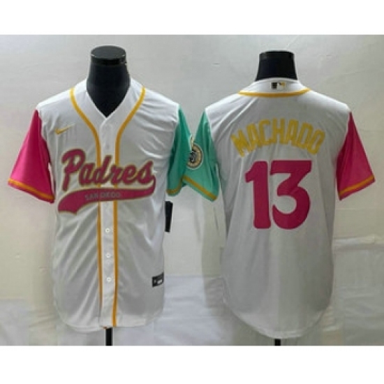 Men's San Diego Padres #13 Manny Machado White NEW 2023 City Connect Cool Base Stitched Jersey 1