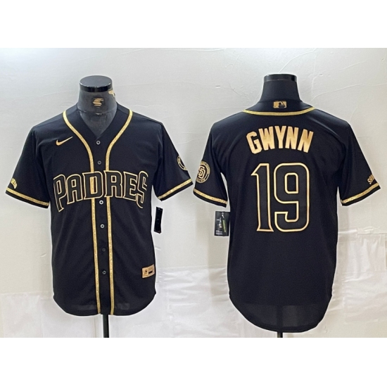 Men's San Diego Padres #19 Tony Gwynn Black Gold Cool Base Jersey