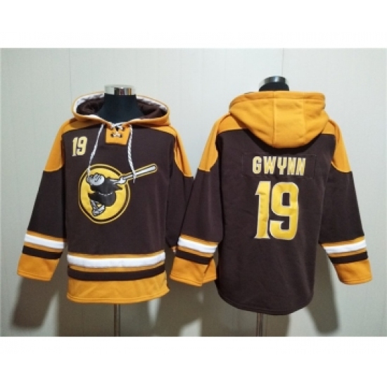 >Men's San Diego Padres #19 Tony Gwynn Brown Gold Ageless Must-Have Lace-Up Pullover Hoodie