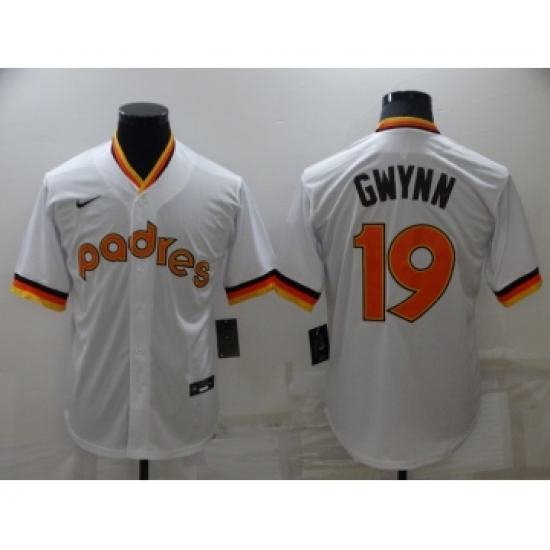 Men's San Diego Padres #19 Tony Gwynn White Cooperstown Collection Stitched Throwback Jersey