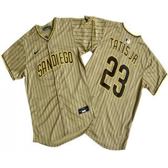 Men's San Diego Padres #23 Fernando Tatis Jr Khaki Pinstripe Limited Stitched Jersey