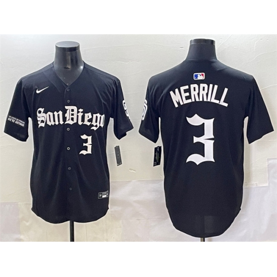 >Men's San Diego Padres #3 Jackson Merrill Black Gothic Edition Vapor Limited Stitched Baseball Jersey