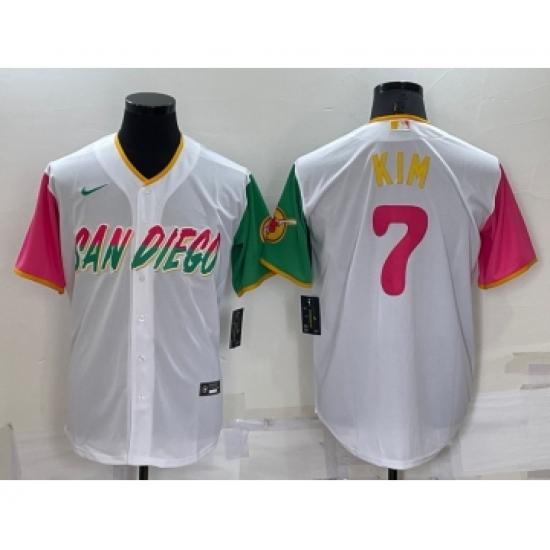 >Men's San Diego Padres #7 Ha Seong Kim White 2022 City Connect Cool Base Stitched Jersey