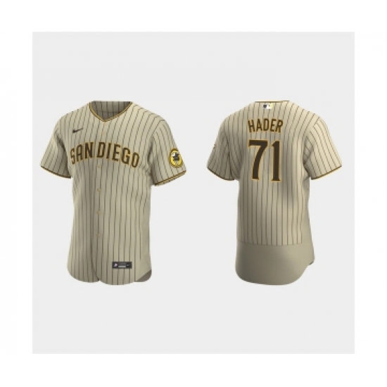 >Mens San Diego Padres #71 Josh Hader Tan Brown Alternate FlexBase Player Jersey