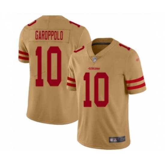 >Men's San Francisco 49ers #10 Jimmy Garoppolo Limited Gold Inverted Legend Football Jersey