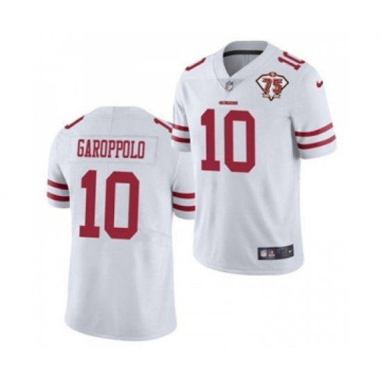 >Men's San Francisco 49ers #10 Jimmy Garoppolo White 2021 75th Anniversary Vapor Untouchable Limited Jersey
