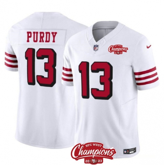 Men's San Francisco 49ers #13 Brock Purdy White 2023 F.U.S.E. NFC West Champions Alternate Football Stitched Jersey