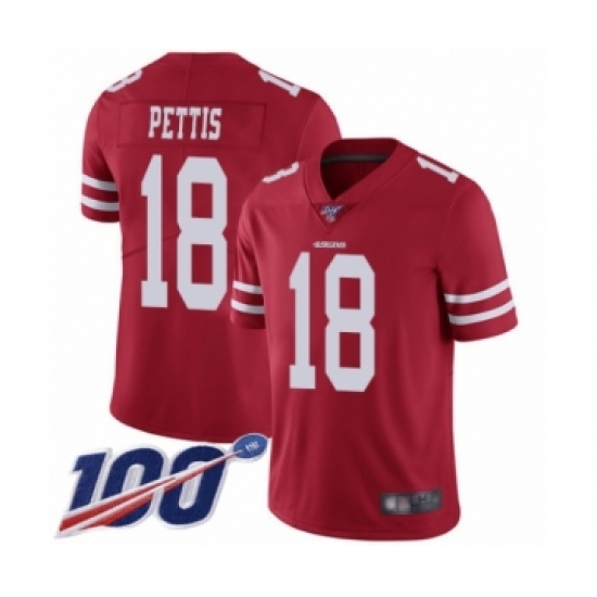 Men's San Francisco 49ers #18 Dante Pettis Red Team Color Vapor Untouchable Limited Player 100th Season Football Jersey