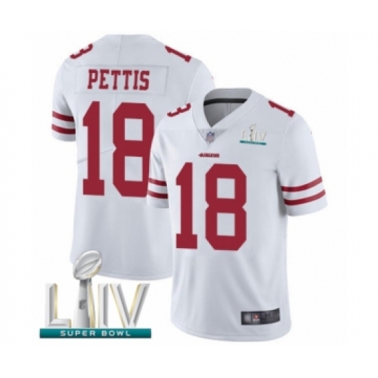 Men's San Francisco 49ers #18 Dante Pettis White Vapor Untouchable Limited Player Super Bowl LIV Bound Football Jersey