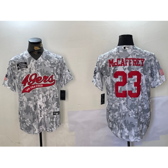 Men's San Francisco 49ers #23 Christian McCaffrey Arctic Camo 2024 Salute to Service Stitched Baseball Jersey