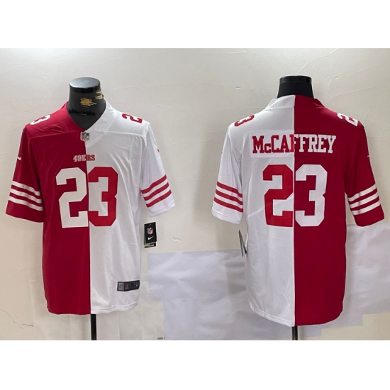 Men's San Francisco 49ers #23 Christian McCaffrey Red White Split Vapor Limited Stitched Jersey