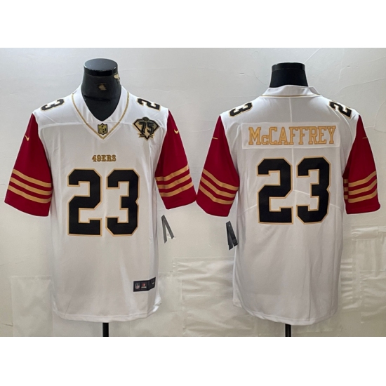 Men's San Francisco 49ers #23 Christian McCaffrey White 75th Golden Edition Stitched Nike Limited Jersey