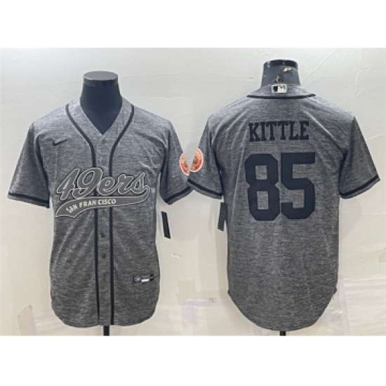 >Men's San Francisco 49ers #85 George Kittle Gray With Patch Cool Base Stitched Baseball Jersey