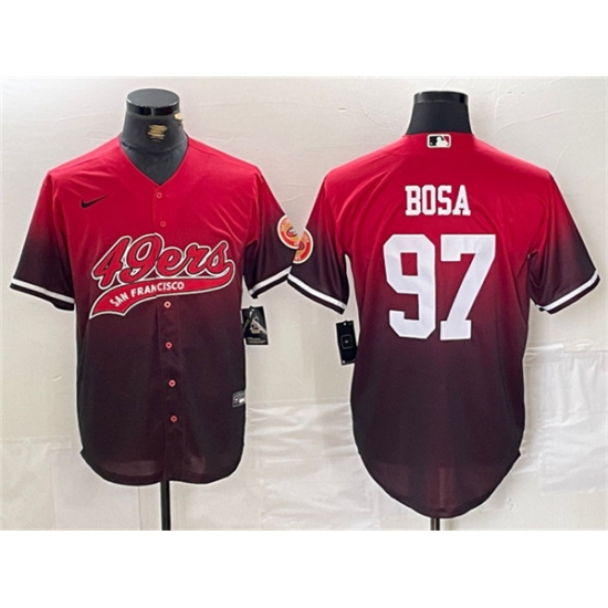 Men's San Francisco 49ers #97 Nick Bosa Red Black With Cool Base Baseball Stitched Jersey