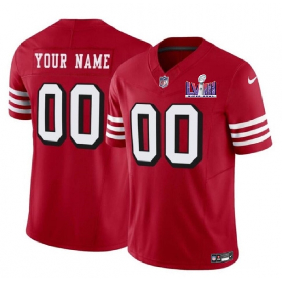 >Men's San Francisco 49ers Active Player Custom New Red 2024 F.U.S.E. Super Bowl LVIII Patch Vapor Untouchable Limited Football Stitched Jersey
