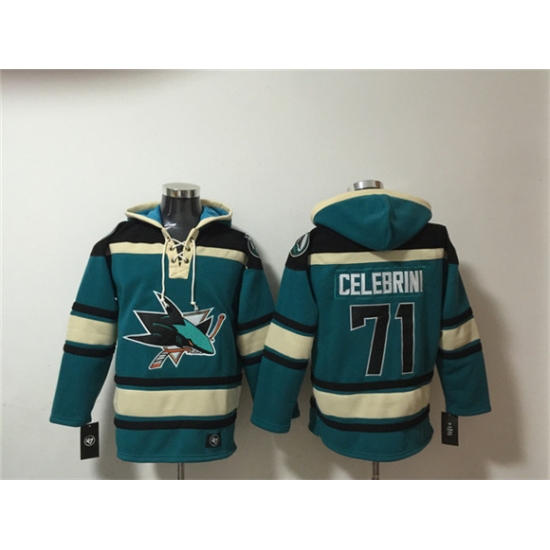 >Men's San Jose Sharks #71 Macklin Celebrini Teal Lace-Up Pullover Hoodie