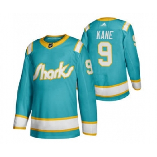 >Men's San Jose Sharks #9 Evander Kane 2020 Throwback Authentic Player Hockey Jersey