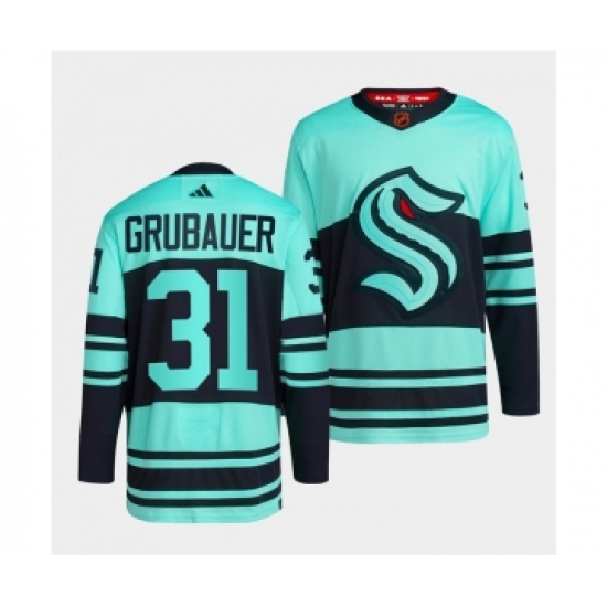 Men's Seattle Kraken #31 Philipp Grubauer Ice Blue 2022-23 Reverse Retro Stitched Jersey