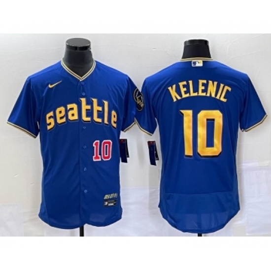 Men's Seattle Mariners #10 Jarred Kelenic Blue 2023 City Connect Flex Base Stitched Jersey