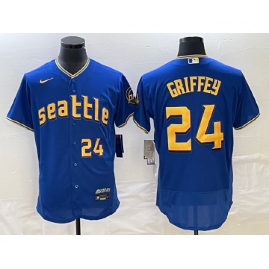 Men's Seattle Mariners #24 Ken Griffey Number Blue 2023 City Connect Flex Base Stitched Jersey