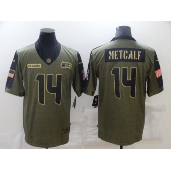 >Men's Seattle Seahawks #14 D.K. Metcalf Nike Olive 2021 Salute To Service Limited Player Jersey