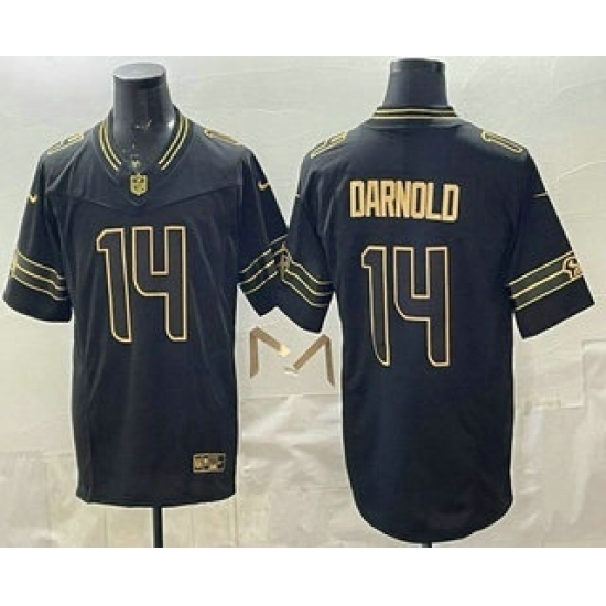 >Men's Seattle Seahawks #14 Sam Darnold Limited Black Gold FUSE Vapor Jersey