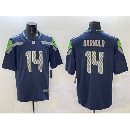 >Men's Seattle Seahawks #14 Sam Darnold Navy 2025 Vapor Limited Football Stitched Jersey