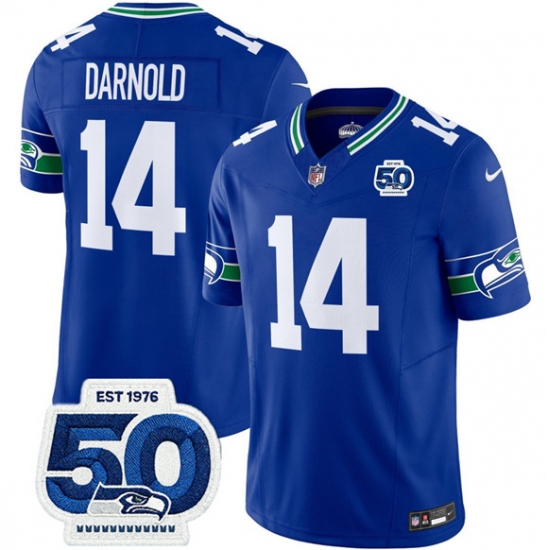 Men's Seattle Seahawks #14 Sam Darnold Royal 2025 F.U.S.E 50th Anniversary Throwback Vapor Limited Football Stitched Jersey