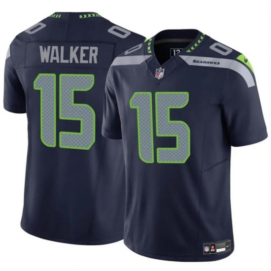 >Men's Seattle Seahawks #15 P.J. Walker Navy 2024 F.U.S.E Vapor Limited Football Stitched Jersey