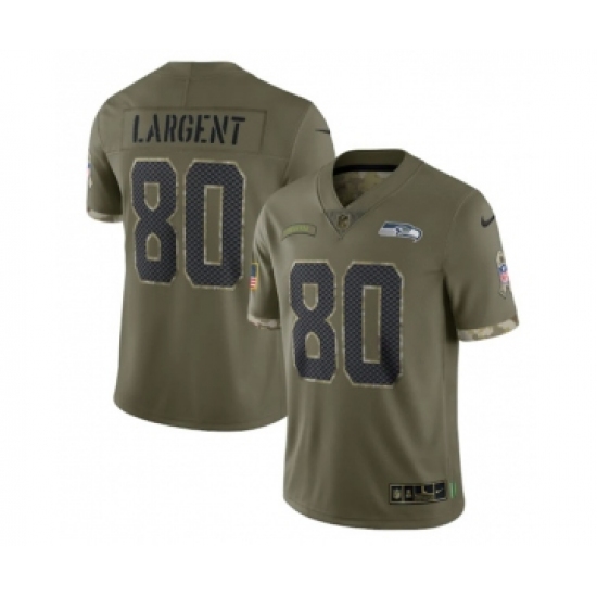 >Men's Seattle Seahawks #80 Steve Largent 2022 Olive Salute To Service Limited Stitched Jersey