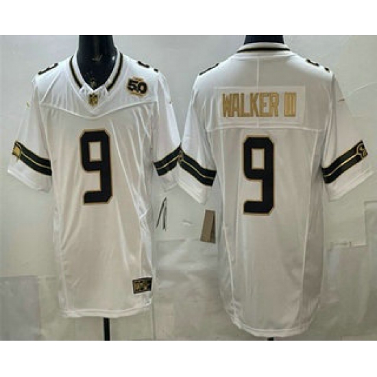 Men's Seattle Seahawks #9 Kenneth Walker III White Gold FUSE 50th Season Vapor Limited Stitched Jersey