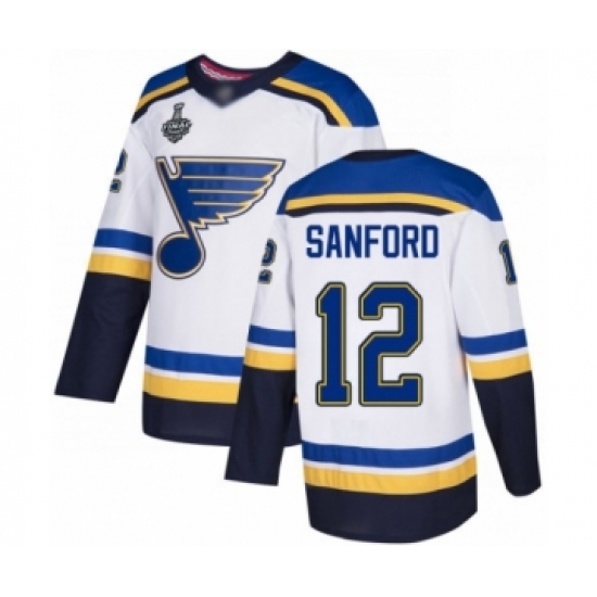Men's St. Louis Blues #12 Zach Sanford Authentic White Away 2019 Stanley Cup Final Bound Hockey Jersey