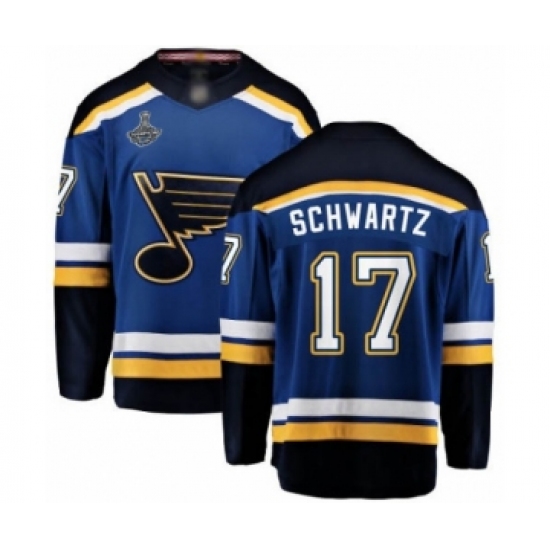 >Men's St. Louis Blues #17 Jaden Schwartz Fanatics Branded Royal Blue Home Breakaway 2019 Stanley Cup Champions Hockey Jersey