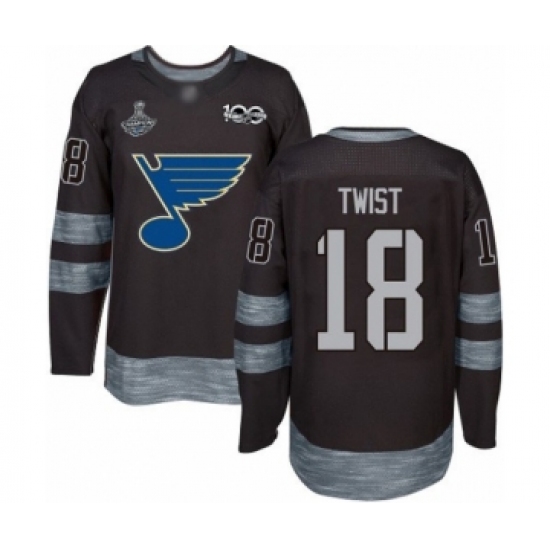 Men's St. Louis Blues #18 Tony Twist Authentic Black 1917-2017 100th Anniversary 2019 Stanley Cup Champions Hockey Jersey