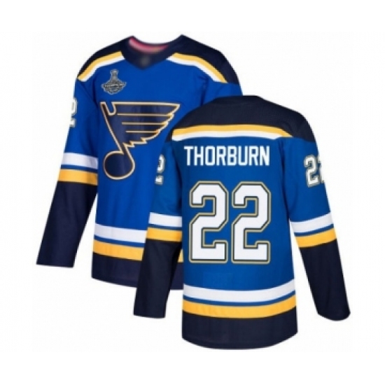 >Men's St. Louis Blues #22 Chris Thorburn Authentic Royal Blue Home 2019 Stanley Cup Champions Hockey Jersey