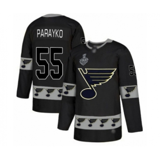 Men's St. Louis Blues #55 Colton Parayko Authentic Black Team Logo Fashion 2019 Stanley Cup Final Bound Hockey Jersey
