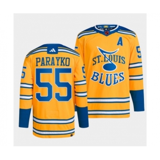 Men's St. Louis Blues #55 Colton Parayko Yellow 2022-23 Reverse Retro Stitched Jersey
