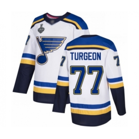 Men's St. Louis Blues #77 Pierre Turgeon Authentic White Away 2019 Stanley Cup Final Bound Hockey Jersey