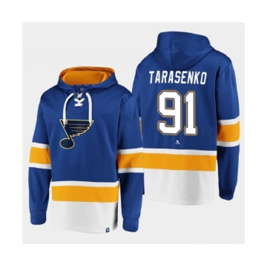 Men's St. Louis Blues #91 Vladimir Tarasenko Blue Ageless Must-Have Lace-Up Pullover Hoodie