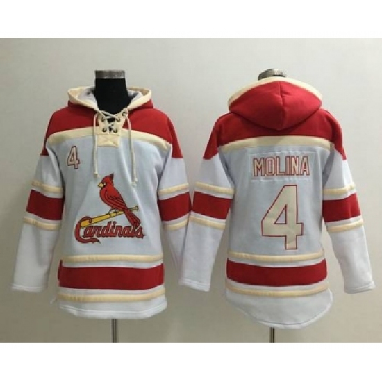 >Men's St. Louis Cardinals #4 Yadier Molina White White Baseball MLB Hoodie