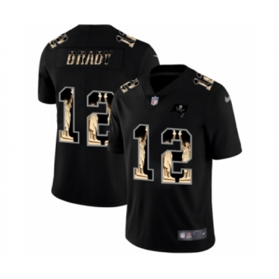 >Men's Tampa Bay Buccaneers #12 Tom Brady Carbon Black Vapor Statue Of Liberty Limited Jersey