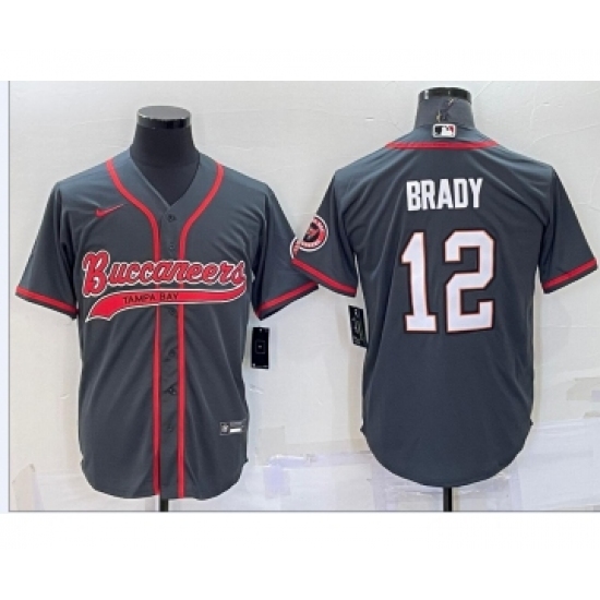 >Men's Tampa Bay Buccaneers #12 Tom Brady Grey Stitched Cool Base Nike Baseball Jersey