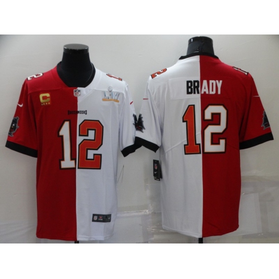 Men's Tampa Bay Buccaneers #12 Tom Brady White Red Bowl C LV Limited Split Fashion Football Jersey