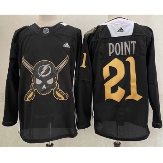 >Men's Tampa Bay Lightning #21 Brayden Point Black Pirate Themed Warmup Authentic Jersey